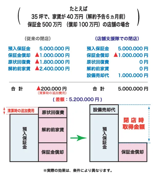 けれど「閉店・移転サービス」を利用することにより、お手元に現金を残した状態でお店を閉店することが可能となるのです。